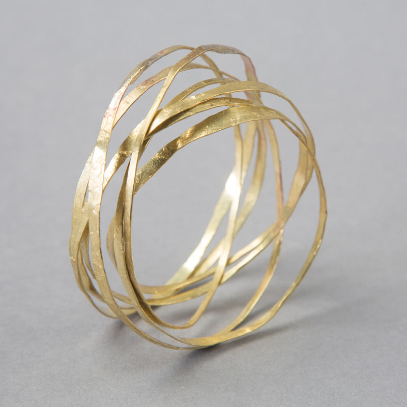 Wrapped fine brass bangle with 7 revolutions and a natural pattern like riven slate. From the 'Amrwd' (meaning Raw) collection.