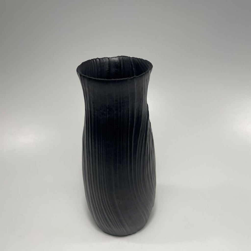 Turned from western red cedar and with a lacquered finish, this vase has been flamed and dyed to highlight the texture of the wood.