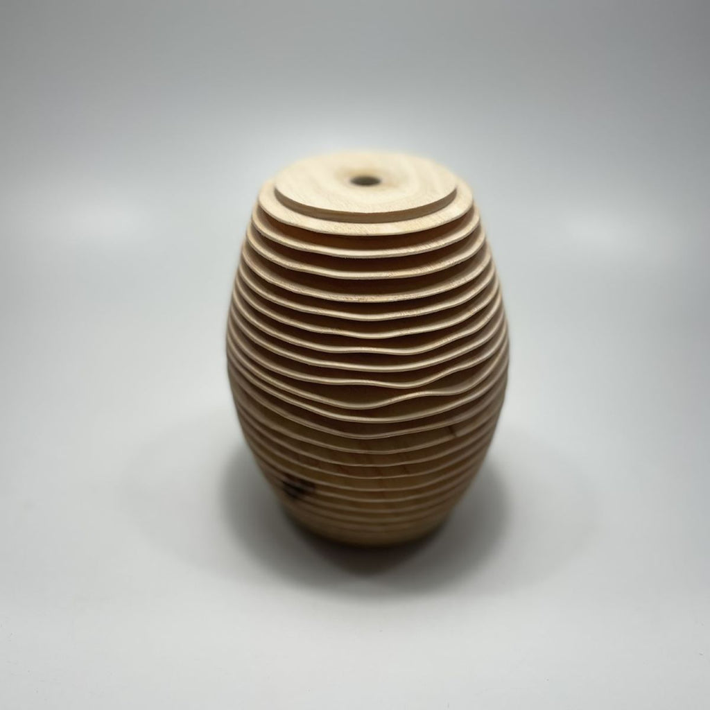 Lathe turned wavy form in green (unsesasoned) ash with thin fins to encourage it to twist and turn as it dries naturally.