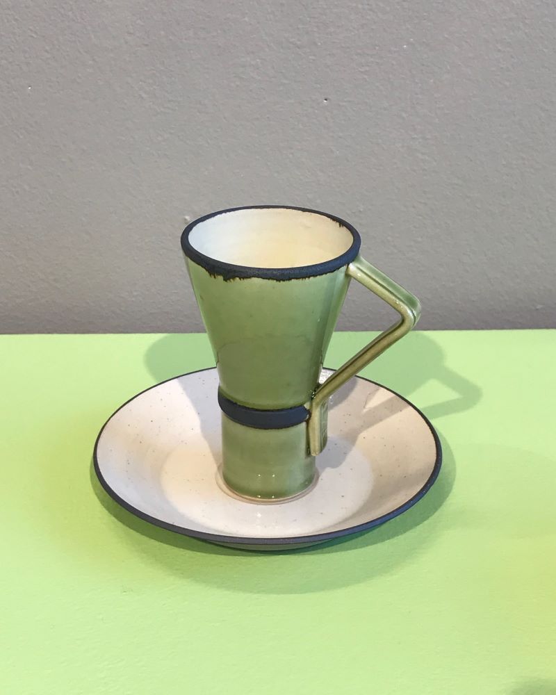 Hand thrown cup and saucer by potter Ian Rylatt. This beautiful cup is simple in design and perfect to enjoy your morning coffee!Materials: stonewareDimensions (approx)