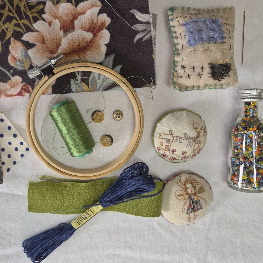 Alison will provide materials (fabrics, yarn etc) for you to choose from on the day. You'll be working with an embroidery hoop - this can be borrowed for the day but if you think you'd like to continue with your piece at home then please bring along your own embroidery hoop (size of hoop is your choice and can become a permanent frame to your work if desired).