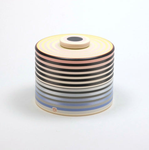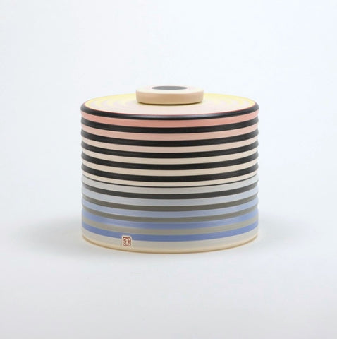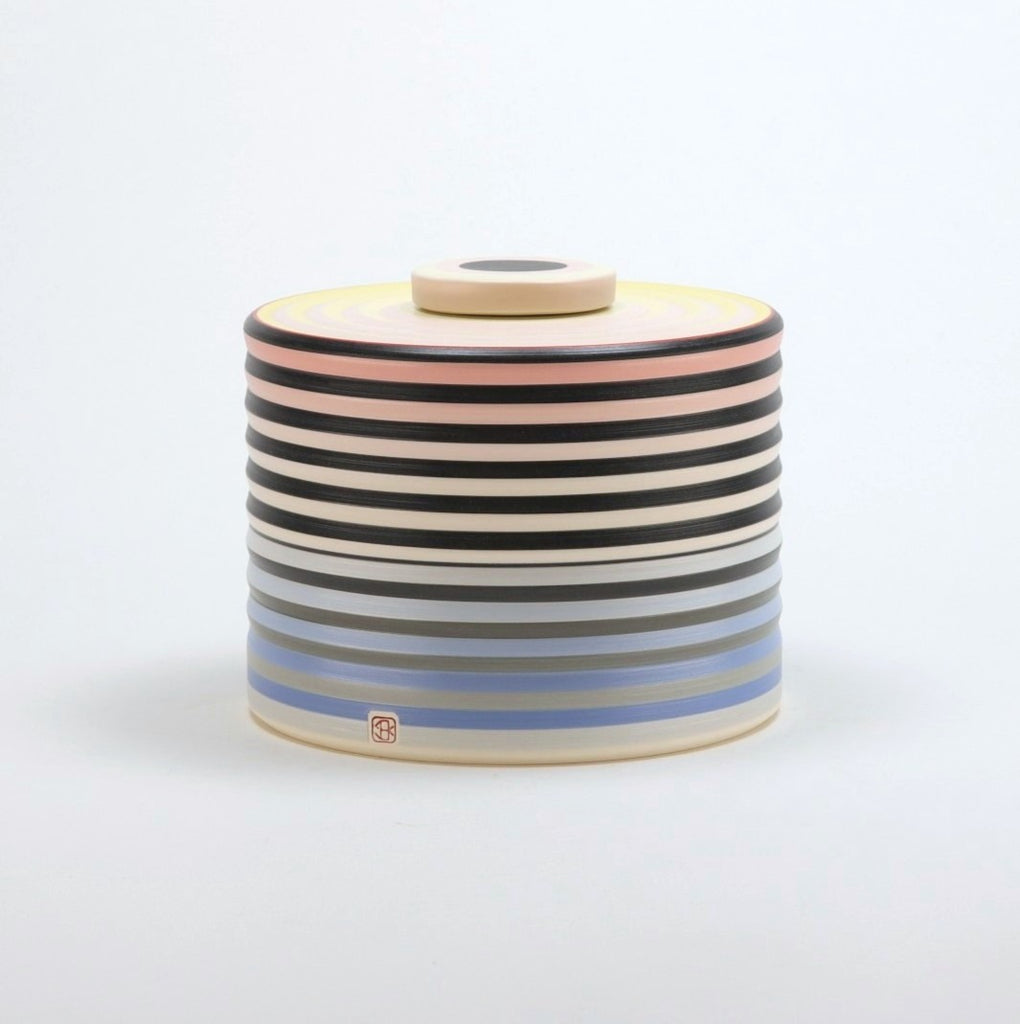 Wheel-thrown and brushed various tones of engobe