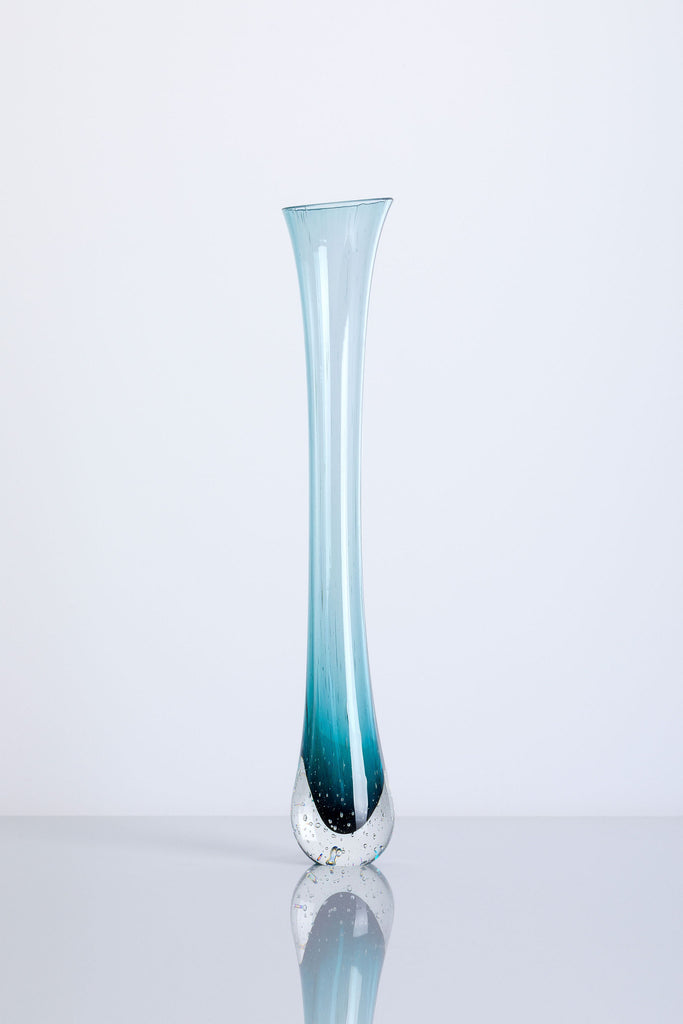 Gravity formed slim bud vase in green by award-winning glass artist Verity Pulford.