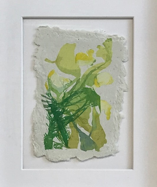 Screen-printed drawings with paper stencils on handmade recycled paper.