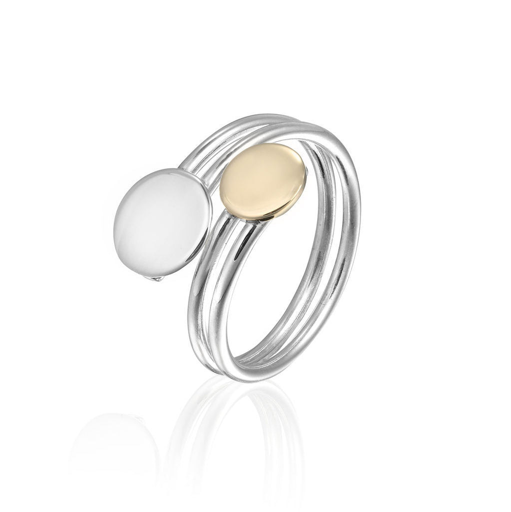 A double banded Sterling silver ring with beautiful 9ct yellow gold detailing.