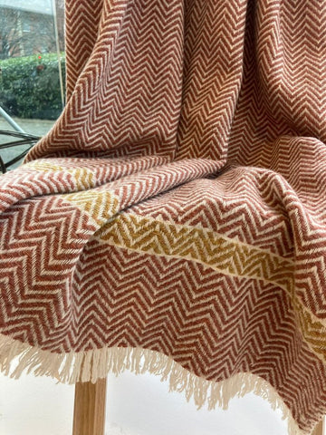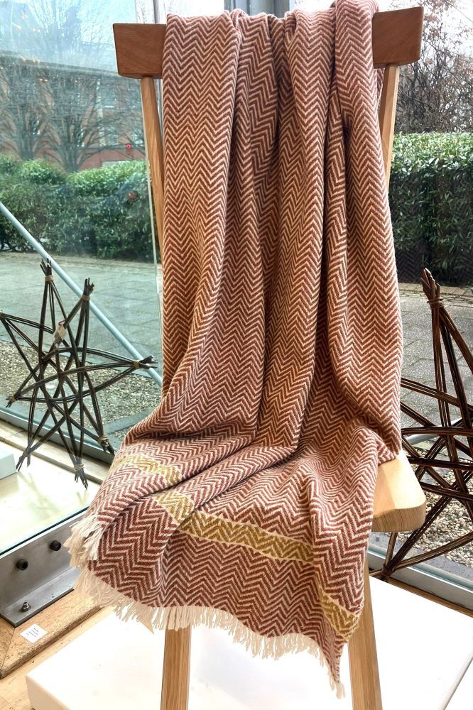 Traditional Welsh pattern Carthen (throw) handwoven in pure wool, by Sioni Rhys Handweavers. This beautiful throw has multiple uses; whether as a cover at the bottom of a bed or as a throw on the sofa to wrap around you on chilly evenings.