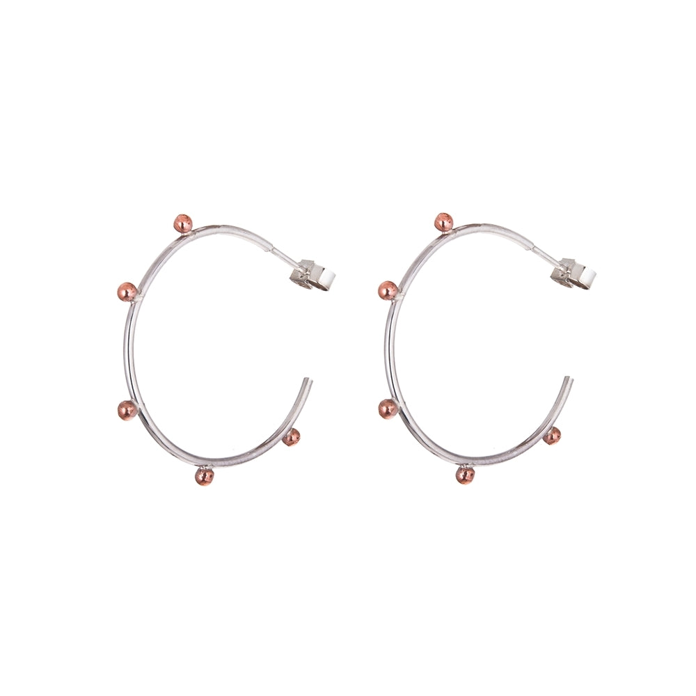 Delicate hoop earrings with a stud fitting inspired by the sun rises over Wales symbolising hope. With each day the sun rises and hope soars. Made by hand in Sterling Silver with copper granulation. The earrings arrive hallmarked, and beautifully gift packaged in a high quality branded jewellery box. Materials: Sterling silver and copper Dimensions: The earrings measures 27mm wide The silver is 1.2mm thick
