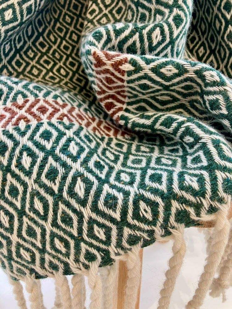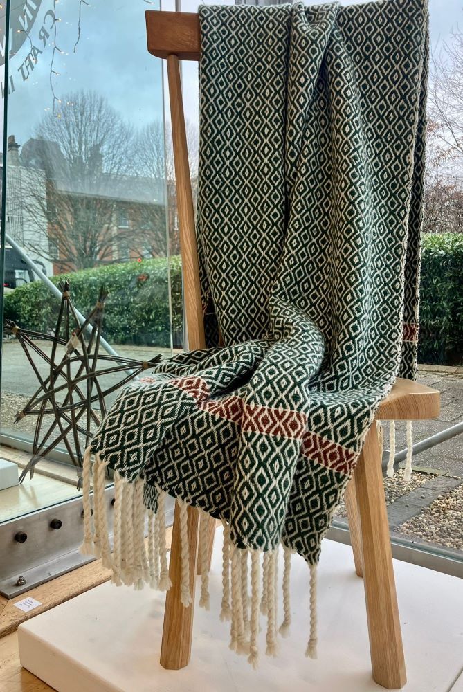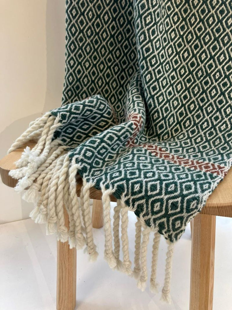 Green Forest Llanofer throw by Sioni Rhys Handweavers