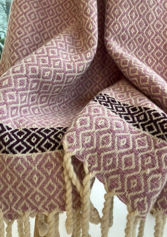 Traditional Welsh pattern Carthen (throw) handwoven in pure wool, by Sioni Rhys Handweavers. This beautiful throw has multiple uses; whether as a cover at the bottom of a bed or as a throw on the sofa to wrap around you on chilly evenings.