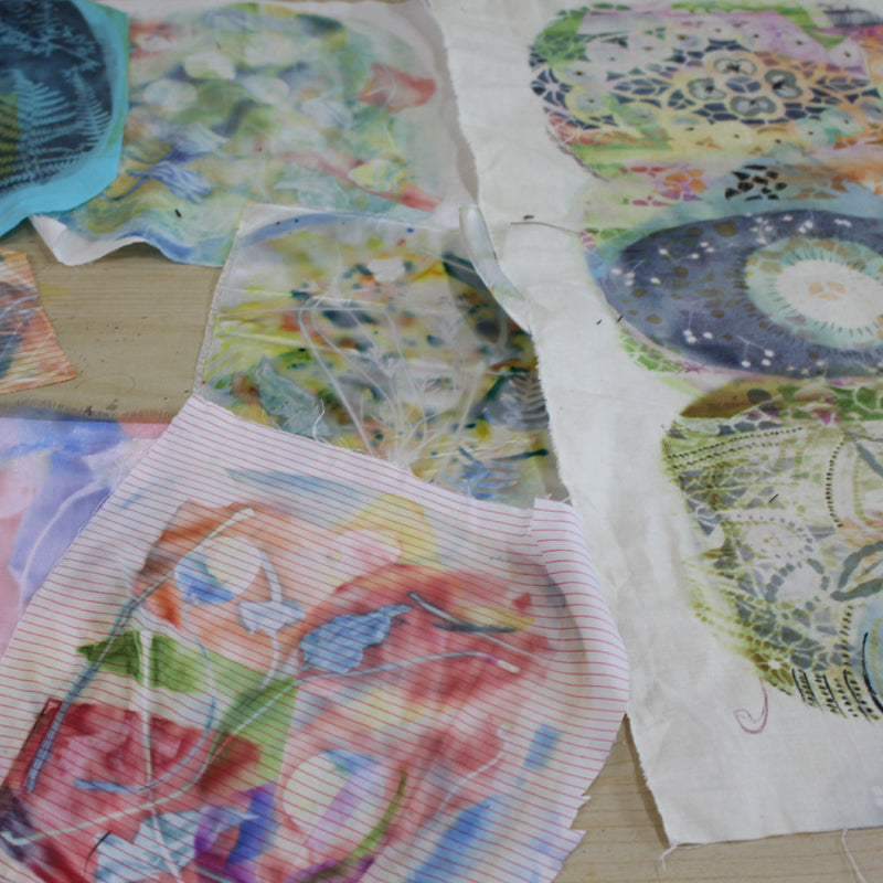 Come along and explore with Alison Moger, the exquisite designs that can be achieved by using the heat transfer process on synthetic silk. Beautiful results can be created by using leaves and grasses found in nature. Once you have explored the process you will be able to create some exciting samples. We will explore the process and gain experience of the possibility’s that can be accomplished using vibrant colours and combining them with nature to create something beautiful to wear or frame.